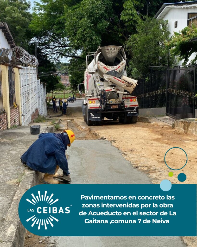 Las Ceibas Empresas Públicas de Neiva adelanta trabajos de pavimentación en concreto en el sector de La Gaitana, comuna 7,...