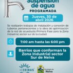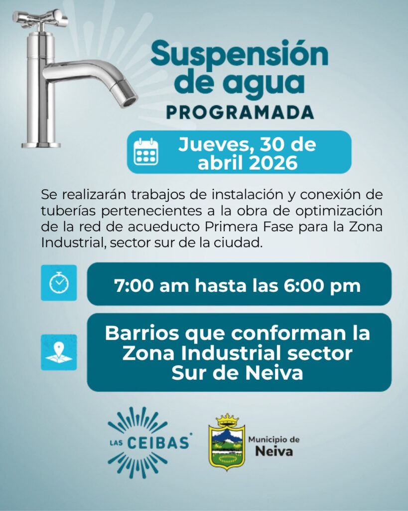 Los habitantes de los barrios que conforman la Zona Industrial, en el sector sur de Neiva, tendrán una suspensión programada...
