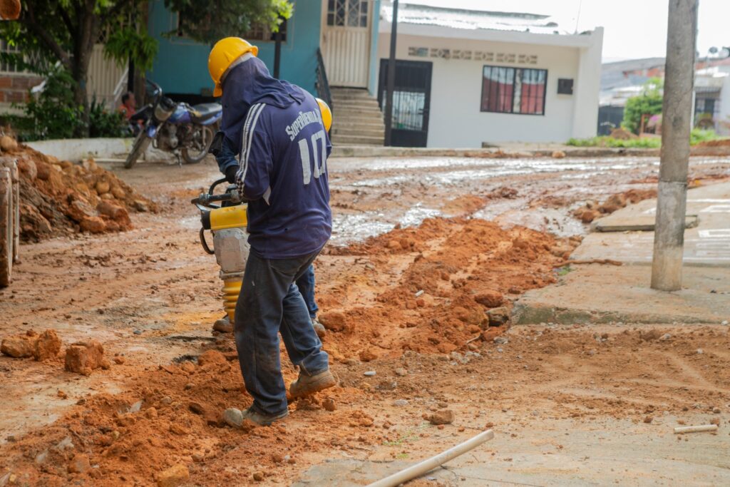 En materia de acueducto, ya fue completada la instalación de la red de 6 pulgadas en el costado norte sobre la Calle 7, permitiendo extender las labores hacia el interior del barrio. Esta intervención contempla además el parcheo de las zonas intervenidas, alcanzando a la fecha un avance del 30%, lo que marca un progreso significativo en esta fase del proyecto.