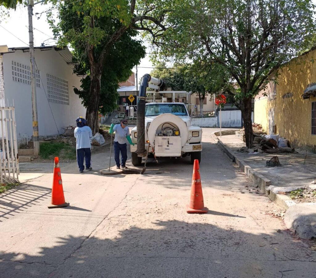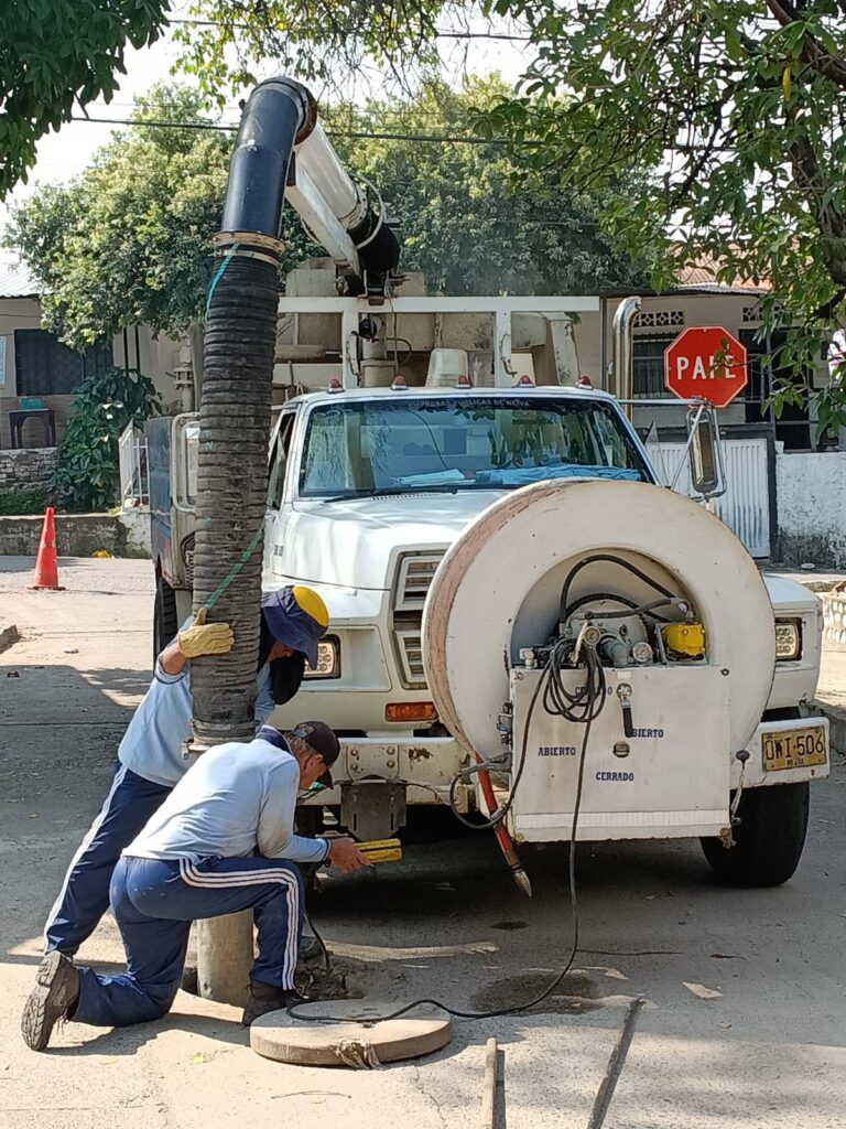 El equipo técnico de la entidad se desplazó a varios puntos de este sector de la ciudad con el vehículo especializado Vactor, herramienta fundamental para realizar labores de limpieza y succión de residuos que impiden el flujo adecuado de las aguas residuales y lluvias.