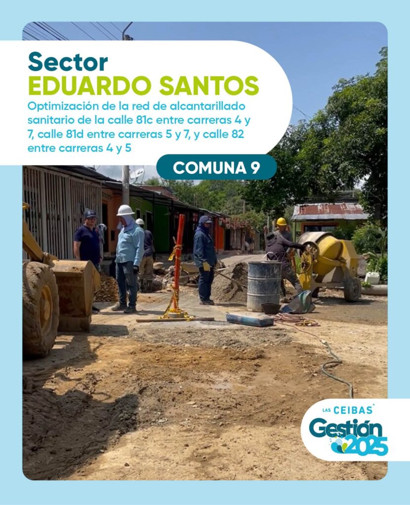 La optimización del alcantarillado en el sector Eduardo Santos representa un avance significativo para la comuna 9 y confirma el esfuerzo institucional por mejorar la infraestructura sanitaria de la ciudad. Con estas obras, Las Ceibas E.S.P. continúa fortaleciendo la calidad de los servicios públicos y generando beneficios reales para las familias neivanas.