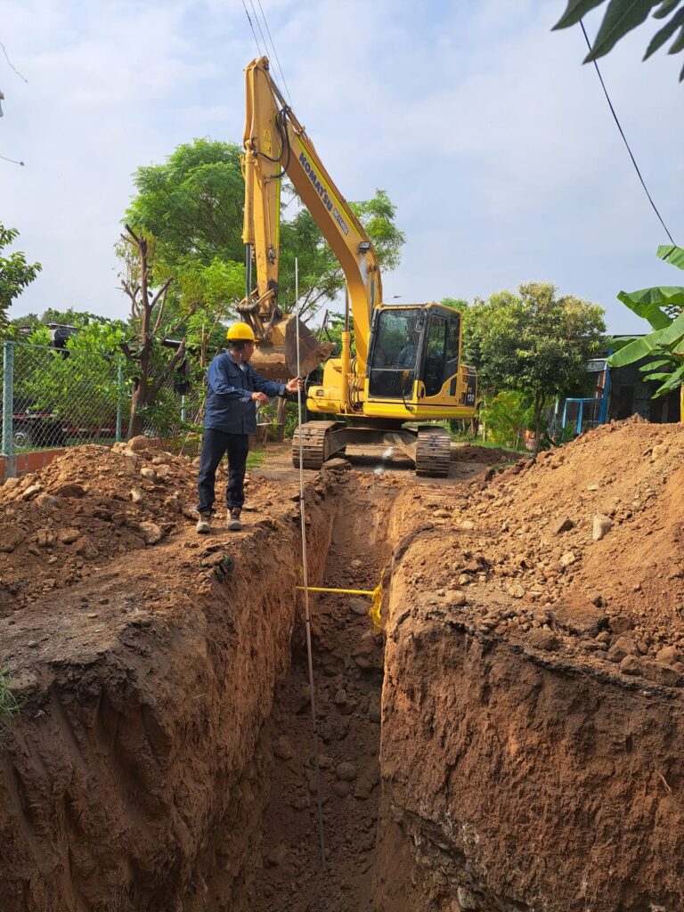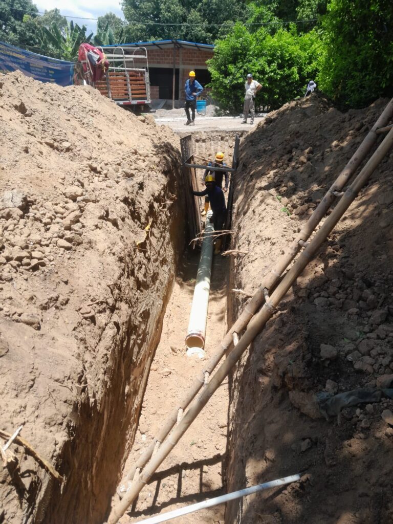 Este proyecto contempla la intervención integral del sistema de alcantarillado existente, permitiendo modernizar la infraestructura y garantizar un mejor manejo de las aguas residuales. Las labores incluyen el reemplazo de redes deterioradas, mantenimiento de tramos críticos y ampliación de cobertura hacia sectores que no contaban con el servicio.